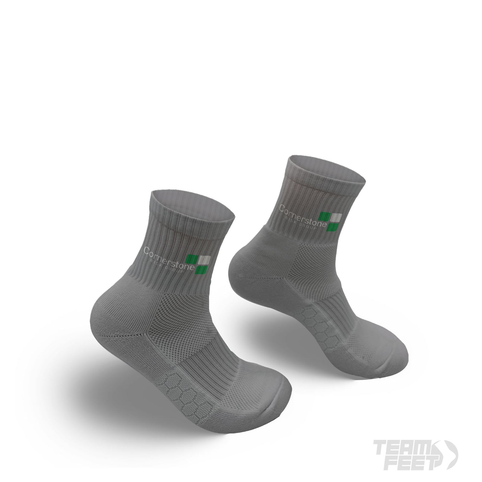 Introducing the Team Feet Quarter: The perfect balance of visibility and performance. Show off your artwork just above your shoe line with our shortest visible sock design.