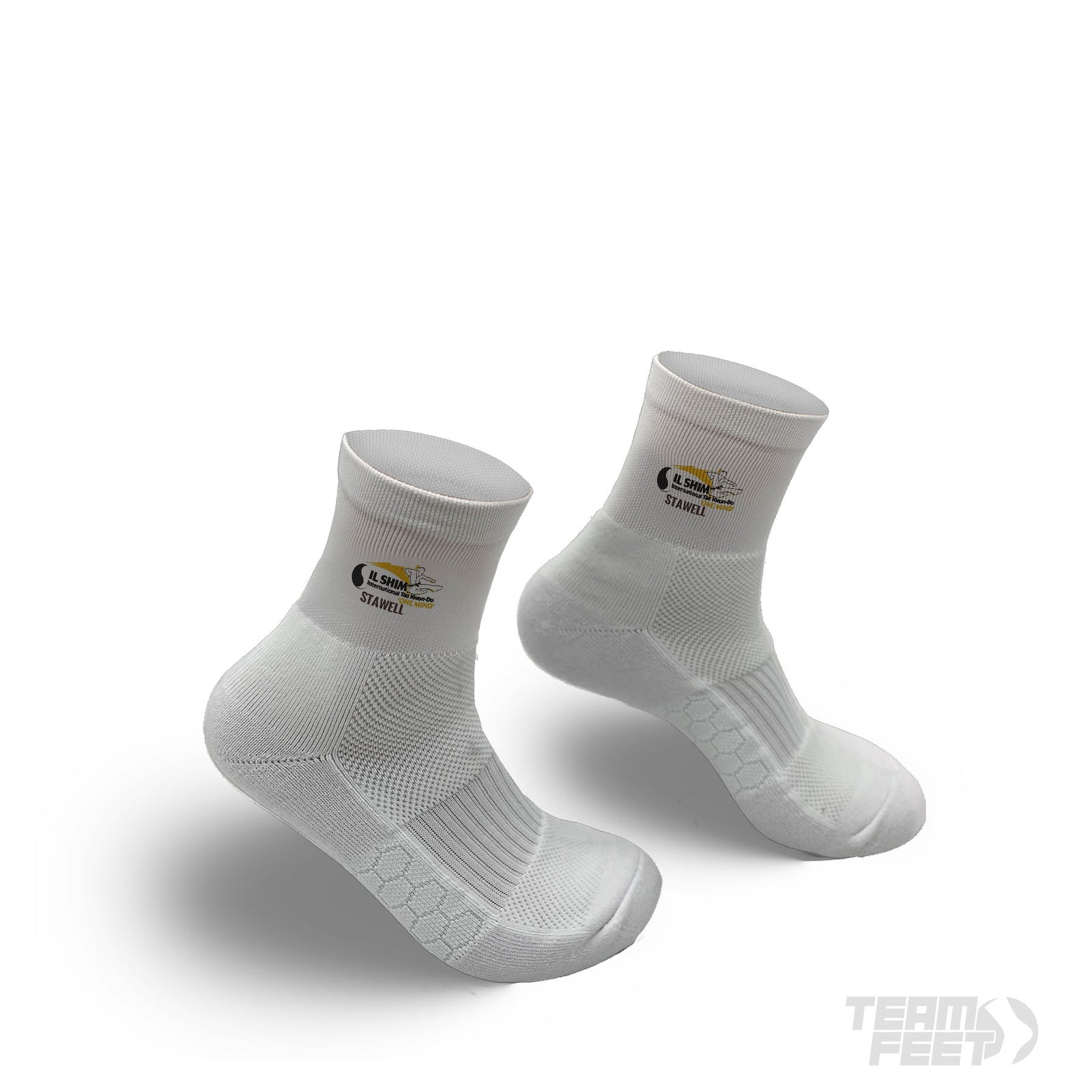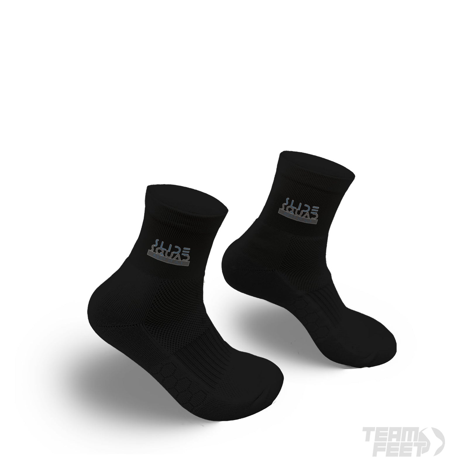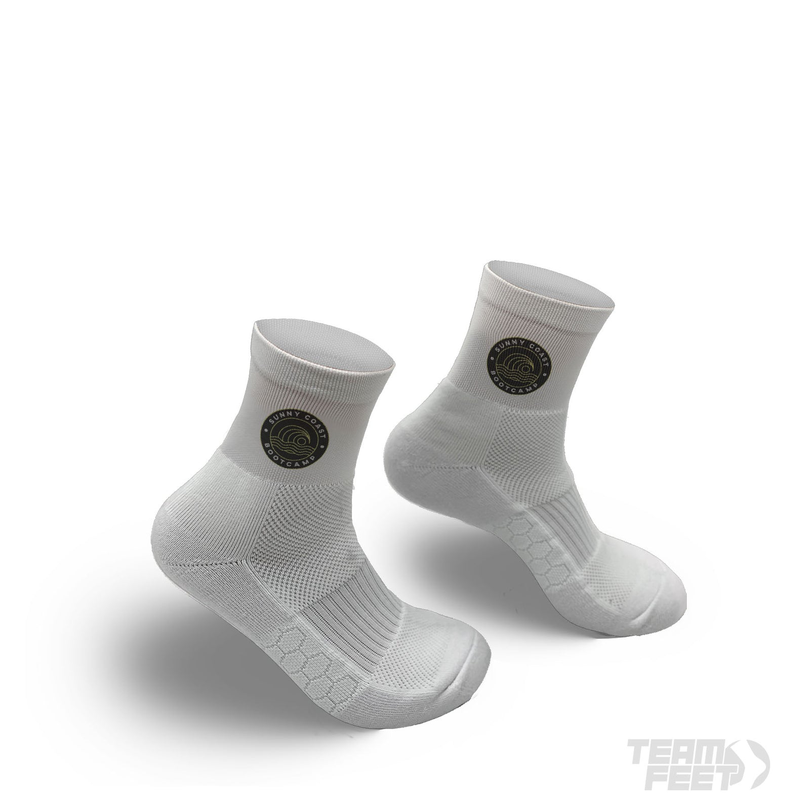 Introducing the Team Feet Quarter: The perfect balance of visibility and performance. Show off your artwork just above your shoe line with our shortest visible sock design.
